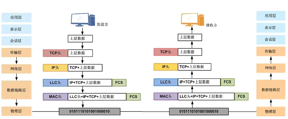 通信特点:对等通信,为了使数据分组从源传送到目的地,源端OSI模型的每一层都必须与目的端的对等层进行通信,这种通信方式称为对等层通信。在每一层通信过程中,使用本层自己协议进行通信。