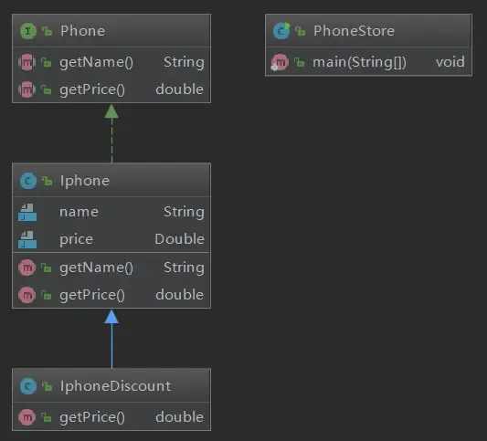 在IPhone接口中,增加一个方法getDiscountPrice,专门用于处理打折需求。但是这个方法是有问题的,接口应该是稳定且可靠的,不应该经常发生变化,否则接口作为契约的作用就失去了。且违背了开闭原则,因此否定。修改实现类