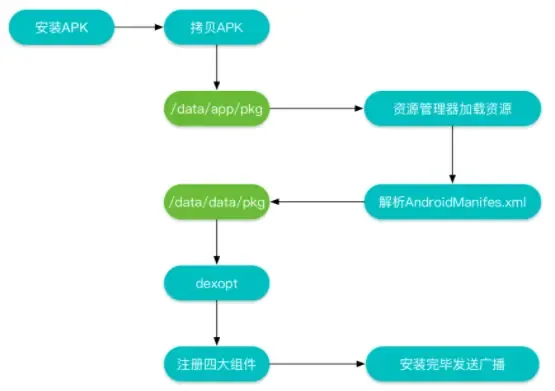 • 系统应用安装:开机时加载系统的APK和应用,没有安装界面;