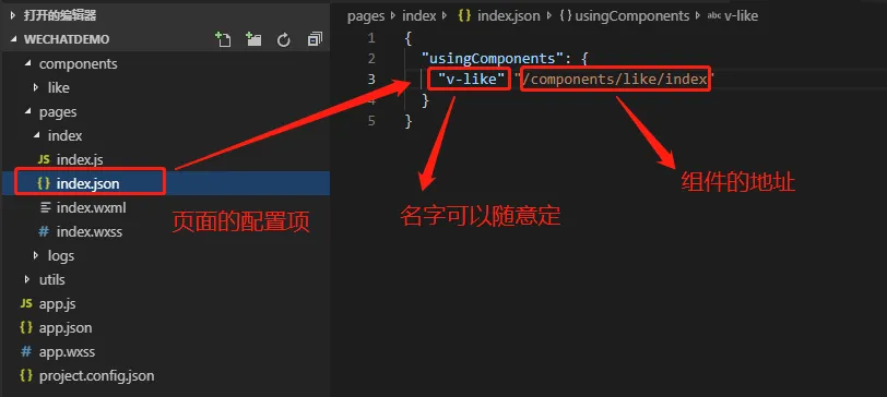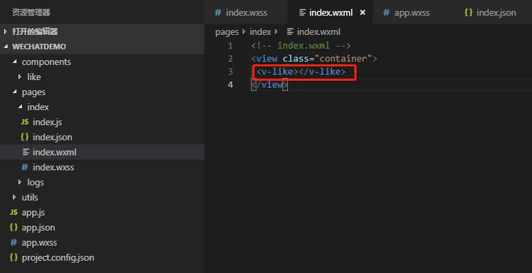 (3.)在页面的.wxml文件和.wxss文件中引用模板文件page.js文件监听事件