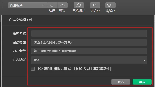 微信小程序开发工具通过添加编译模式可以针对于某一个特定的页面进行编译。