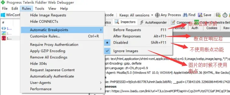 2. after response:也就是服务器响应之后,在Fiddler将响应传回给客户端之前。