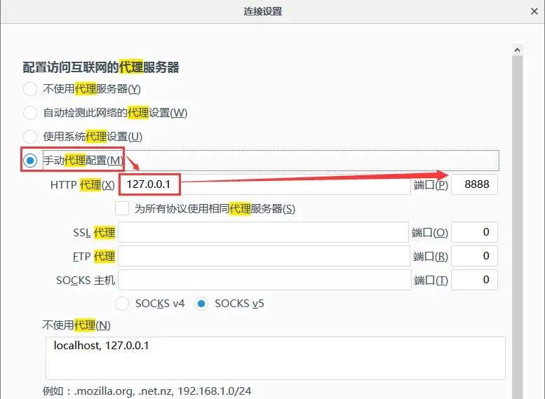 当Fiddler启动后,会默认将代理设为了127.0.0.1 端口号为8888。有些浏览器需要手动设置代理,在浏览器设置里面进行代理设置: