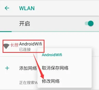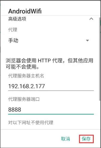 在手机设置里面找到自己连接的WiFi长按,弹出修改网络弹窗,选择修改网络,点击高级选项的下拉菜单,选择手动,配置好主机和端口号,然后确定就可以对手机进行抓包了。