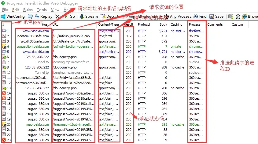 • Show only traffic from:你可以指定只捕获哪个Windows进程中的请求;