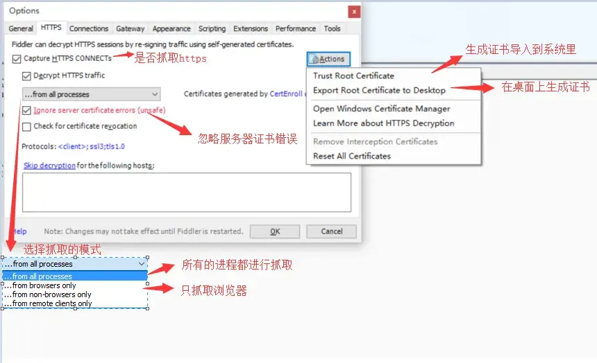 强烈推荐(原创亲测)!!!Fiddler抓取https设置详解(图文)