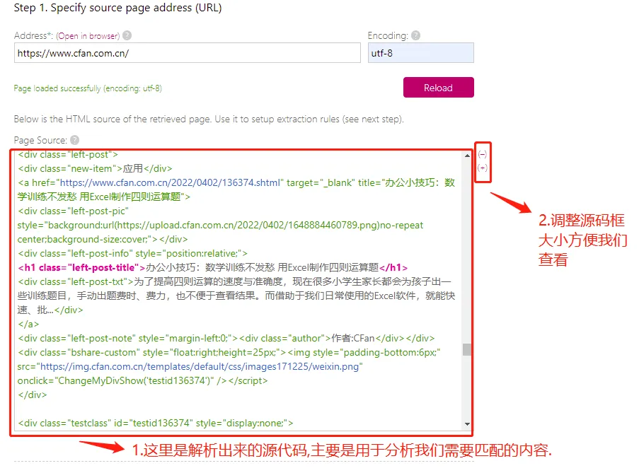 点击 Reload,你就会在下面的选框中看到当前网页的源代码了。